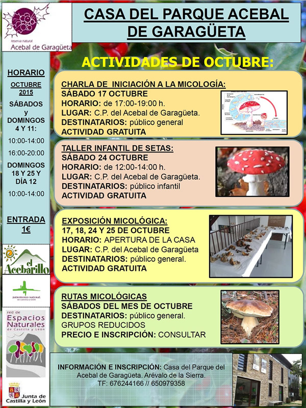 17, 18, 24 y 25 de octubre en horario de apertura de la Casa del Parque. |