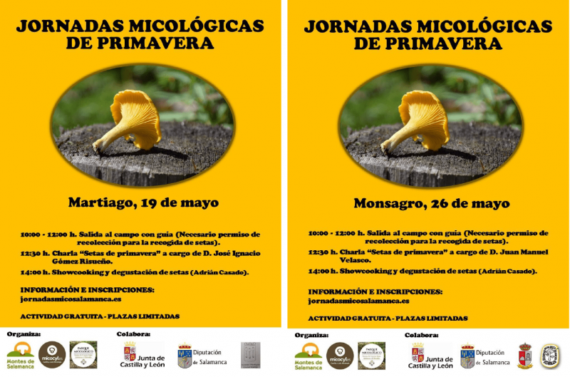 El programa Micocyl, junto con la Asociación titular del Parque Micológico "Sierras de Francia, Béjar, Quilamas y El Rebollar" y en colaboración con la Diputación de Salamanca y la Junta de Castilla y León, organiza las II Jornadas Micológicas de Primavera en dos municipios pertenecientes al Parque Micológico, en la provincia de Salamanca.