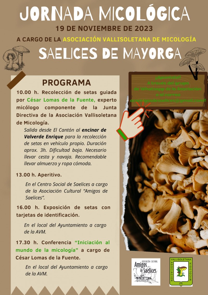 Este domingo 19 de noviembre, la Asociación Vallisoletana de Micología y la Asociación de Amigos de Saelices se unen para ofrecer una experiencia única a los amantes de la micología con unas Jornadas Micológicas llenas de actividades interesantes.