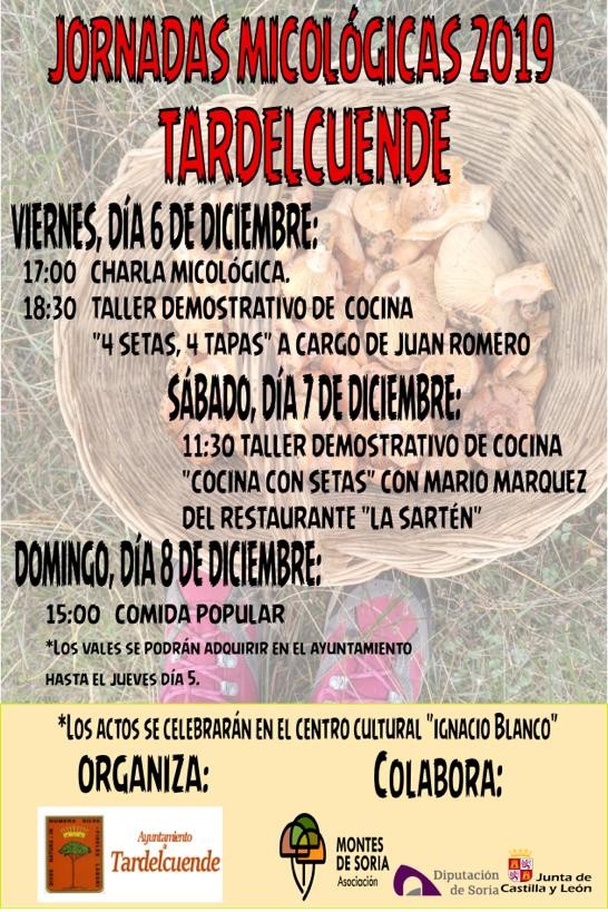 JORNADAS MICOLÓGICAS TARDELCUENDE 2019. 6, 7 y 8 de diciembre de 2019