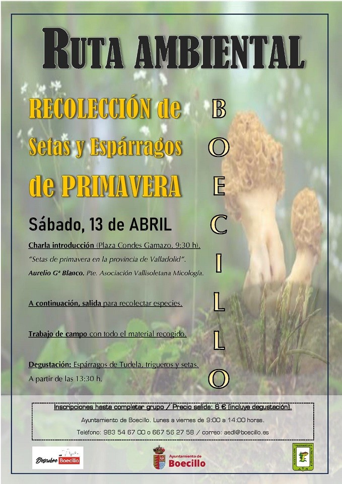 La localidad vallisoletana de Boecillo prepara una ruta ambiental para recolectar setas y espárragos de primavera el próximo sábado 13 de abril.
