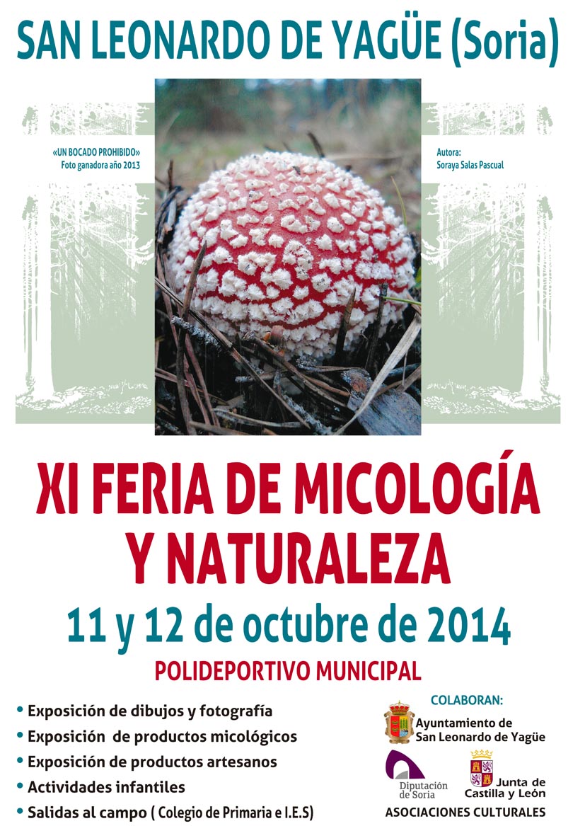 Los días 11 y 12 de octubre la localidad soriana de San Leonardo de Yagüe celebra la XI Feria de Micología y Naturaleza, con numerosas actividades que se desarrollarán en el Polideportivo Municipal y al aire libre. Así, el programa contempla la puesta en marcha de una exposición de dibujos y fotografías, muestra de productos micológicos y artesanos, así como el desarrollo de diversas actividades infantiles y salidas al campo con escolares del municipio.