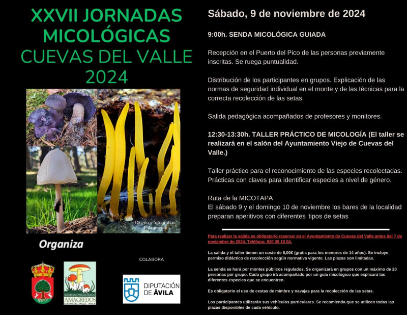 El horario de las XXVII Jornadas micologicas de Cuevas del Valle será: