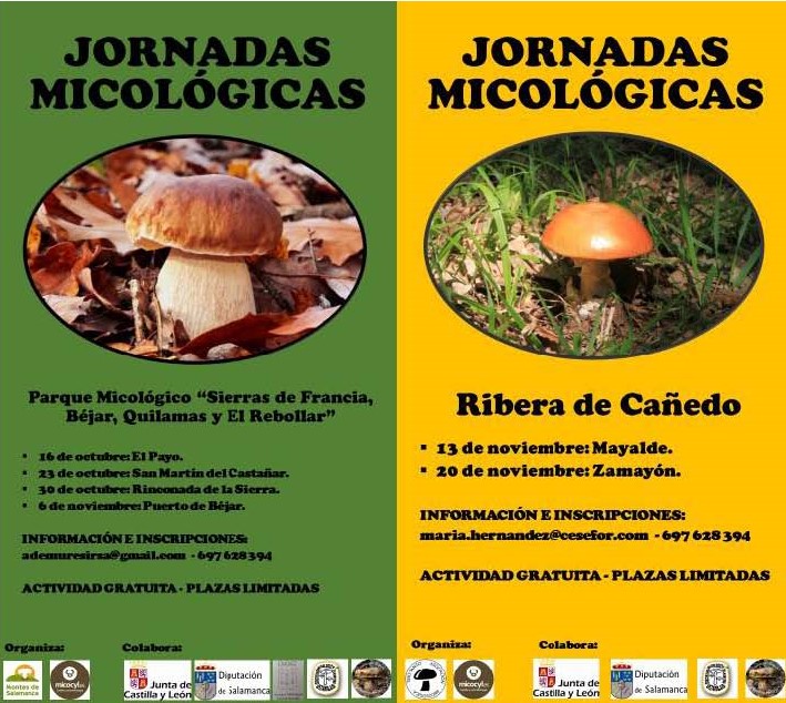 Durante los meses de octubre y noviembre, el programa Micocyl, junto con las asociaciones titulares del Parque Micológico "Sierras de Francia, Béjar, Quilamas y El Rebollar" y del Acotado Micológico "Ribera de Cañedo", van a organizar Jornadas Micológicas en los diferentes municipios pertenecientes a los mismos, en la provincia de Salamanca.