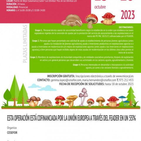 Del 23 al 28 de octubre se va a realizar en el municipio de Puerto de Béjar (Salamanca) un curso gratuito de Experto en Aprovechamiento Micológico.