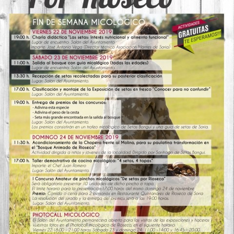 El ayuntamiento de Rioseco de Soria en Colaboración con la Asociación Montes de Soria han organizado las II Jornadas "De Setas por Rioseco", los días 22, 23 y 24 de noviembre de 2019: