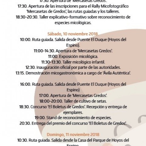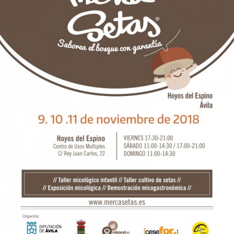 Esta edición de Mercasetas, la primera en la provincia de Ávila, ha sido organizada por la Diputación de Ávila, el Ayuntamiento de Hoyos del Espino, el Programa de Micología de Castilla y León (Micocyl), la Fundación Cesefor y la Marca de Garantía 'Setas de Castilla y León'. Las actividades previstas, que se detallan en el programa inferior, se llevarán a cabo en el marco de una pequeña feria con expositores del ámbito de la micología y productores pertenecientes a la marca colectiva 'Ávila Auténtica'.