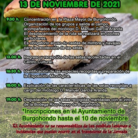 19:00 Degustación de las setas recogidas marinadas con el vino de la Bodega Rico Nuevo de Burgohondo