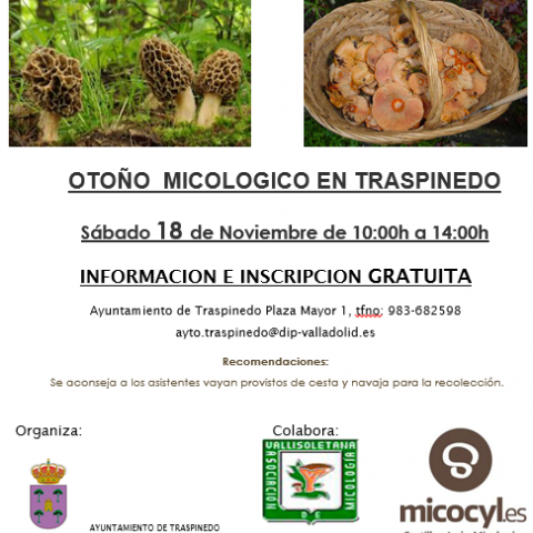 10:00h Charla informativa en el Centro de interpretación de la RESINA C/ Molino 21. “Las mejores setas comestibles de Castilla y León”.