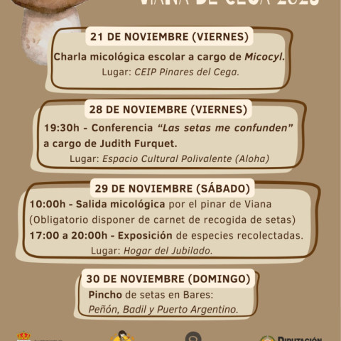 Viana de Cega te invita a disfrutar de sus Jornadas Micológicas, un encuentro dedicado al apasionante mundo de las setas. La programación contará con una charla impartida por Judith Furquet, reconocida divulgadora y experta en micología, seguida de una salida guiada por el monte para identificar diferentes especies en su entorno natural.