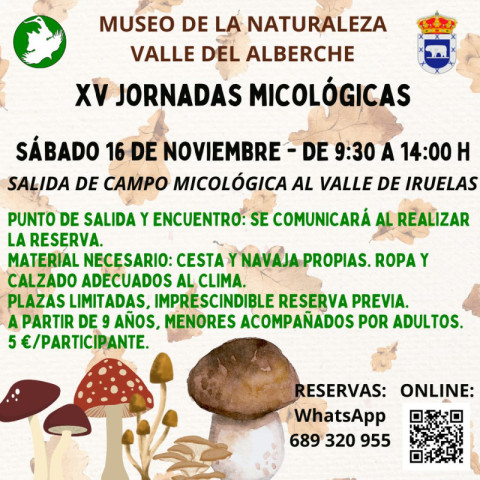 9:30-14:00 Salida Micológica de Campo al Valle Iruelas: Recoleción de muestras. Nociones básicas para la recolección de las setas. Recolección de ejemplares para su identificación y estudio.