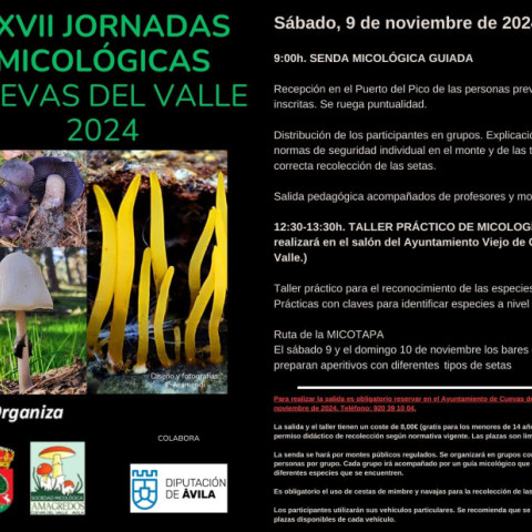 El horario de las XXVII Jornadas micologicas de Cuevas del Valle será: